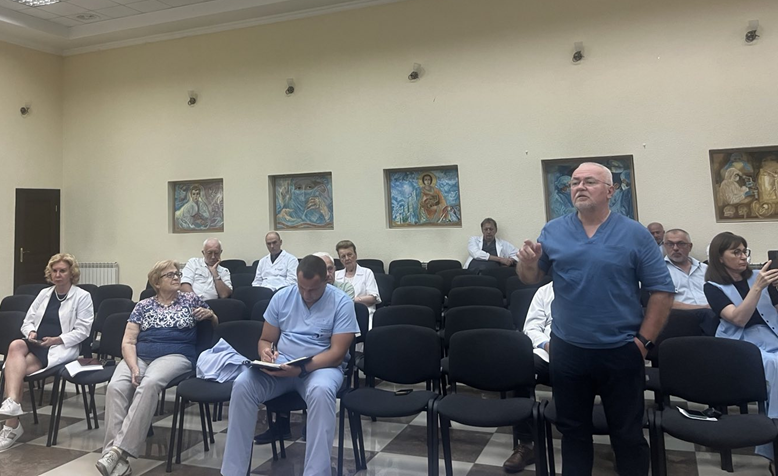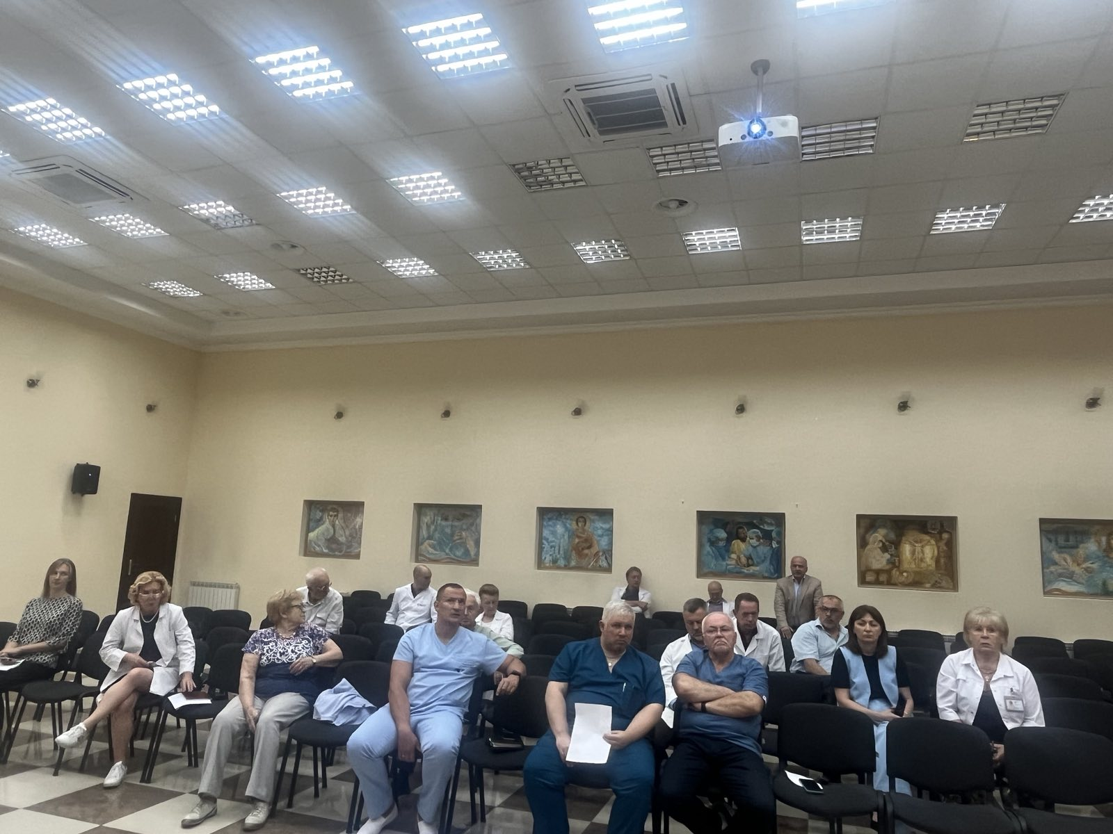 Першим питанням був розгляд проєктів нових науково-дослідних робіт на 2024–2026 рр. Доповідачами були керівники науково-клінічних підрозділів, відповідальні виконавці наукових тематик: канд. мед. наук Безносенко А.П. (доповідав д.  мед. н. Бурлака А. А.), проф., член-кор. Стаховський Е.О., проф. Головко Т.С. (доповідав д. мед. н. Войленко О. А.), проф. Крячок І.А., проф. Смоланка І.І. (доповідав д. мед. н. Ляшенко А. О.), проф. Свінціцький В. С. (доповідала к. мед.н. Дерменжи Т. В.), проф. Іванкова В.С.