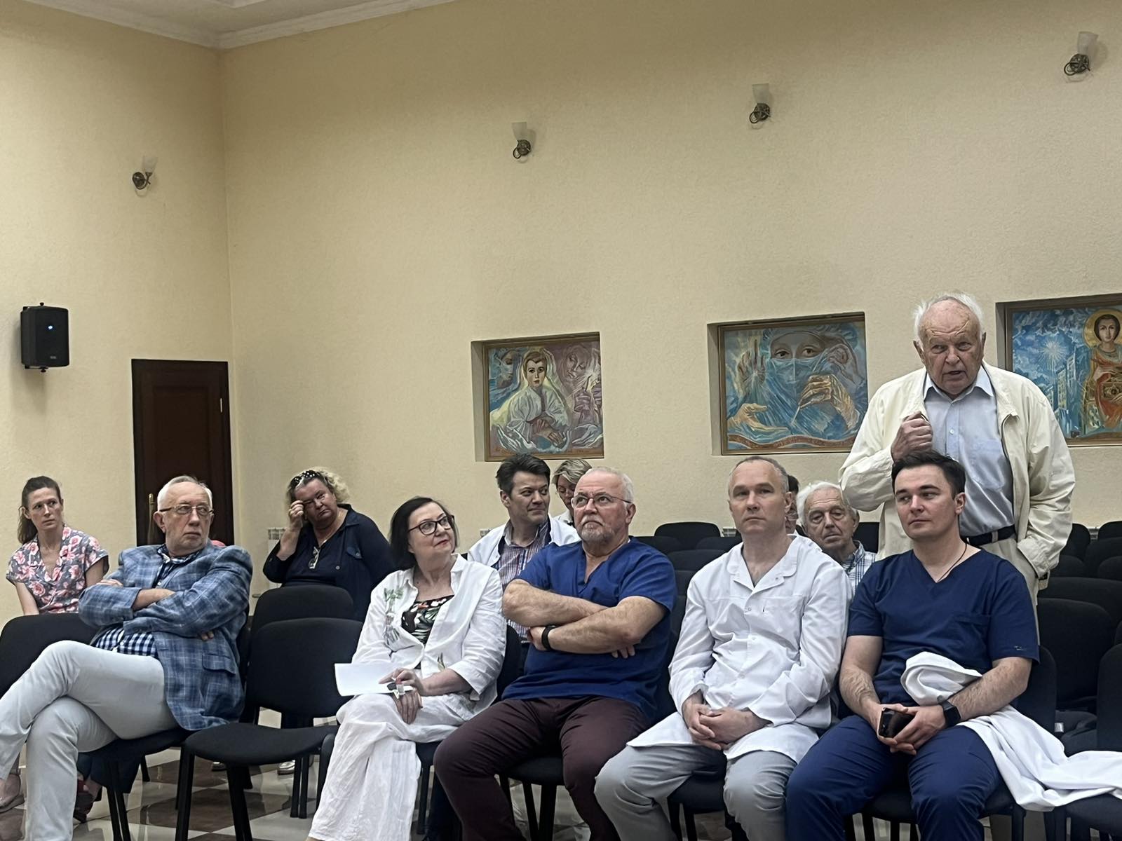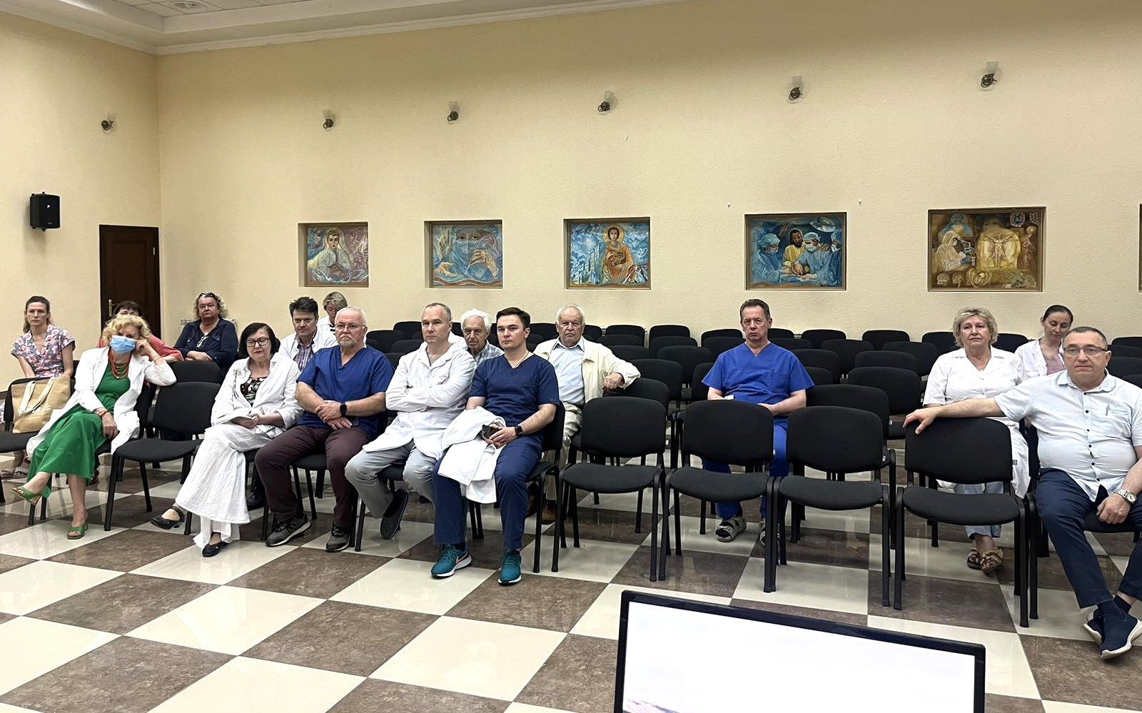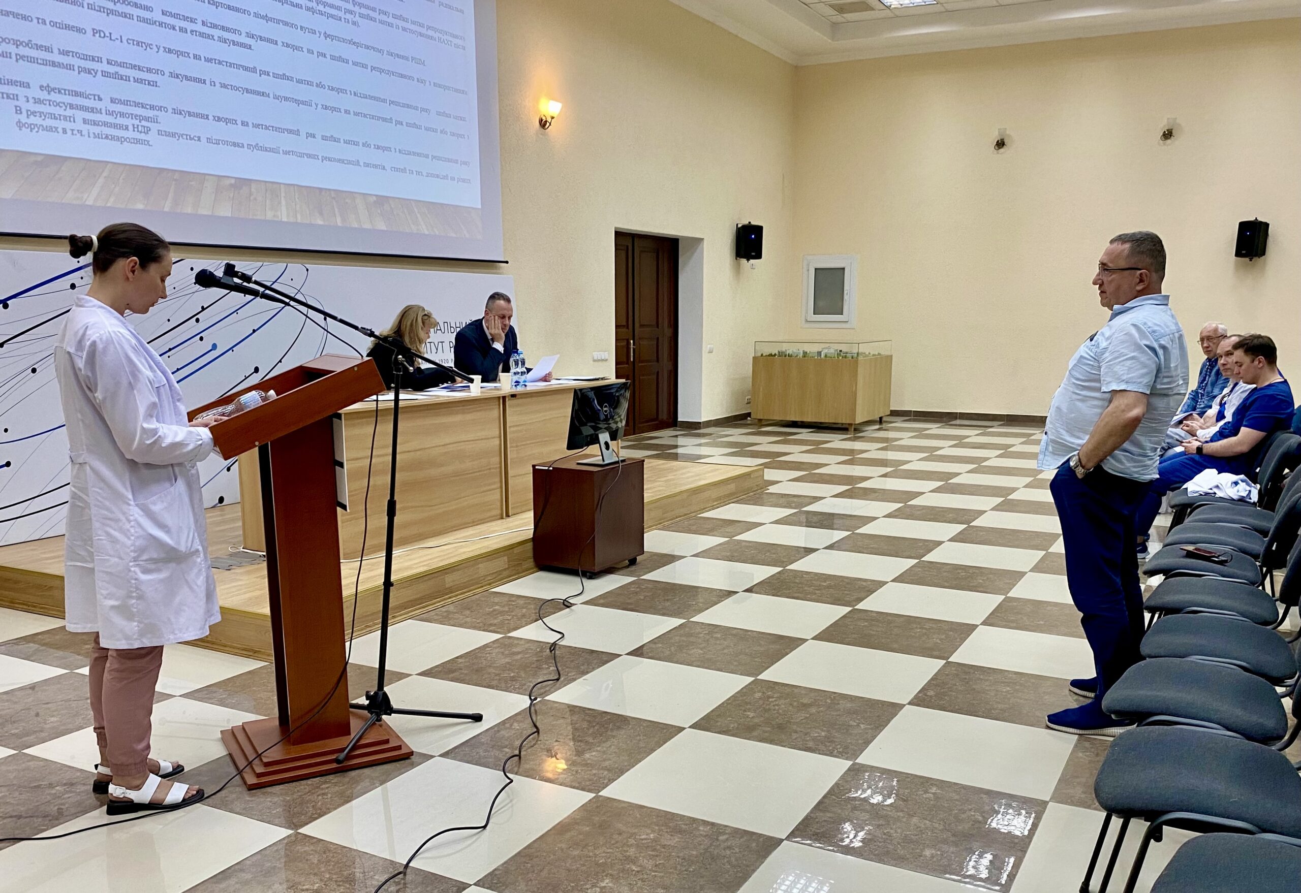 За першим питанням порядку денного заступник генерального директора з наукової роботи Андрій Лукашенко оголосив розгляд проєкт нових тем науково-дослідних робіт, з урахуванням викликів воєнного стану. Доповідачами проєкт НДР були керівники науково-клінічних підрозділів, відповідальні виконавці наукових тематик: професор Ірина Крячок, професор Наталія Храновська (комплексна НДР з залученням керівників науково-клінічних відділень – відповідальних виконавців: к.мед.н. Григорія Климнюка та к.мед.н. Юрія Михайловича), професор Оксана Солодяннікова, відповідальний виконавець к.мед.н. Тетяна Дерменжи (керівник професор Валентин Свінціцький).