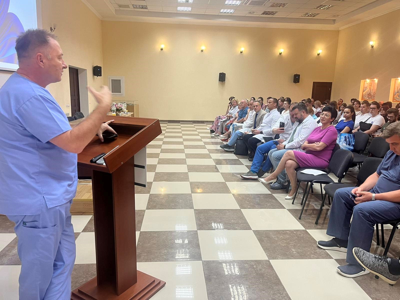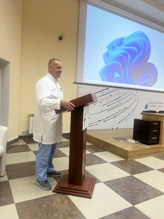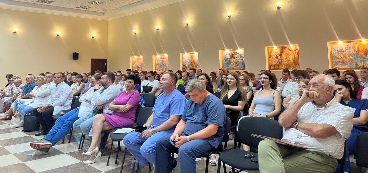 В святковій промові генеральний директор привітала майбутніх лікарів з новим етапом професійного розвитку, побажала творчих успіхів, миру, наполегливості та відданості в обраній професії. Також, з привітальним словом виступили: заступник генерального директора з наукової роботи Андрій Лукашенко, медичний директор Анатолій Шудрак, заступник генерального директора з лікувально-координаційної роботи Олександр Яцина, заступник генерального директора з цифрової трансформації Андрій Турчин та куратори.
