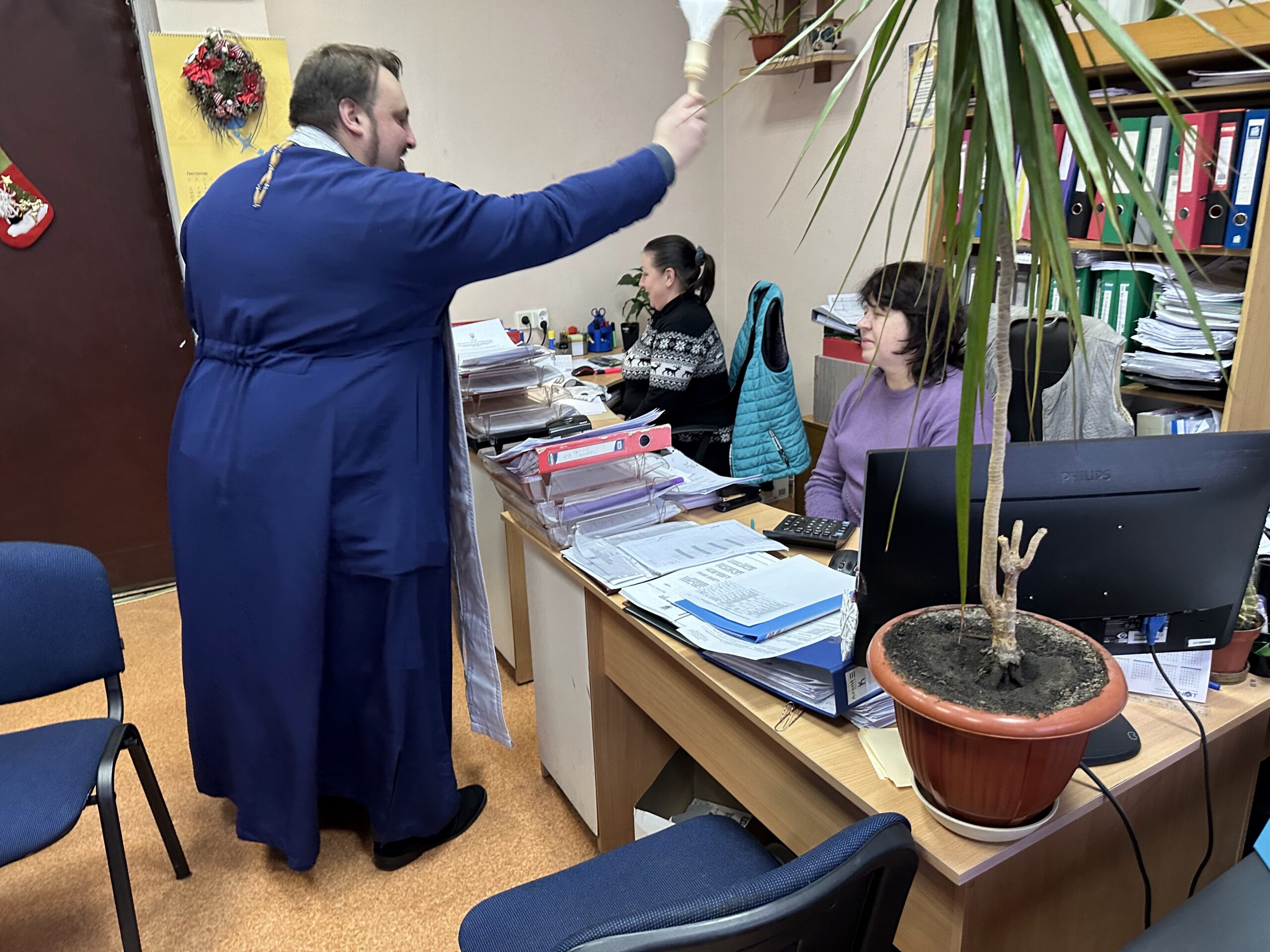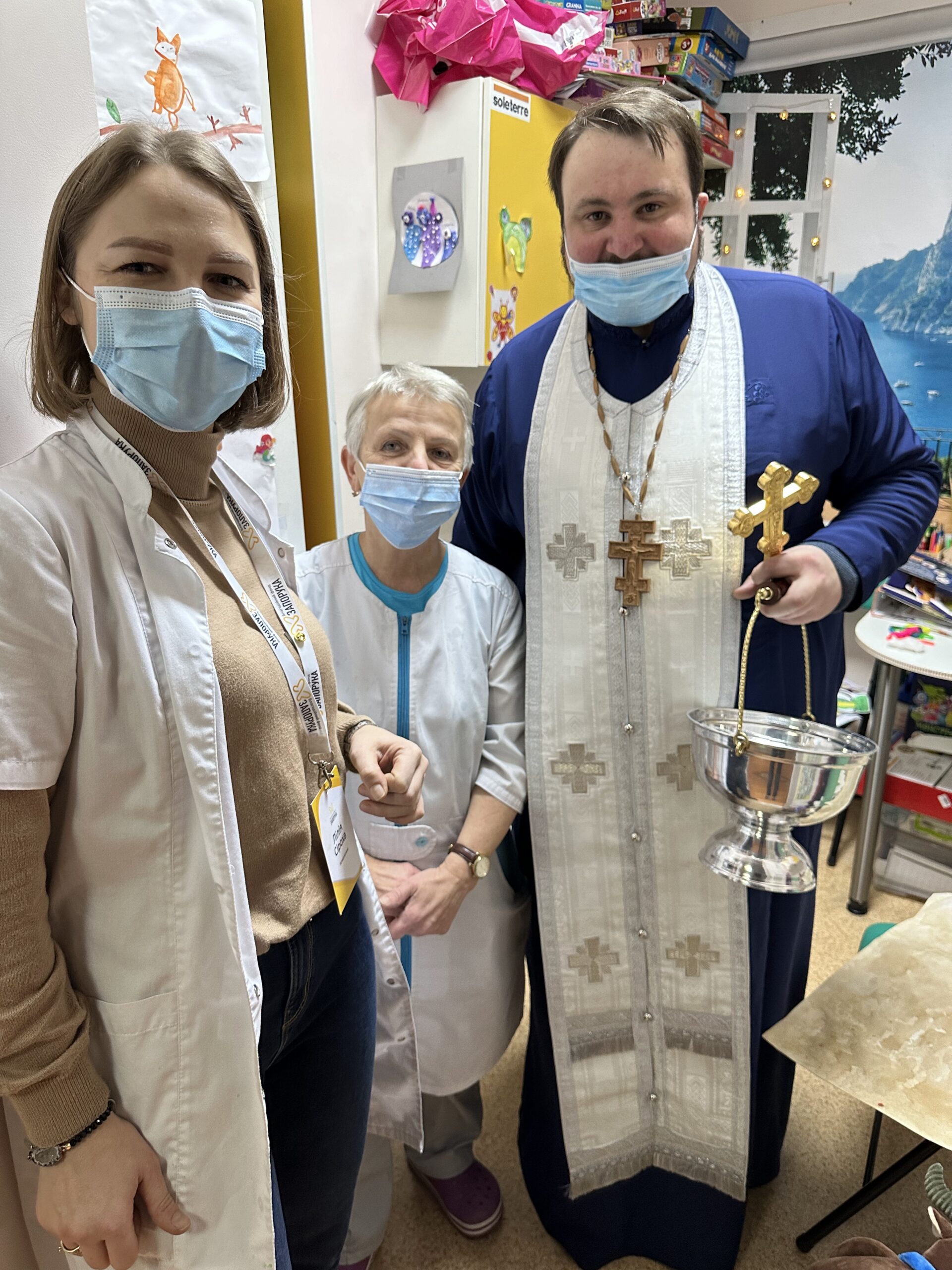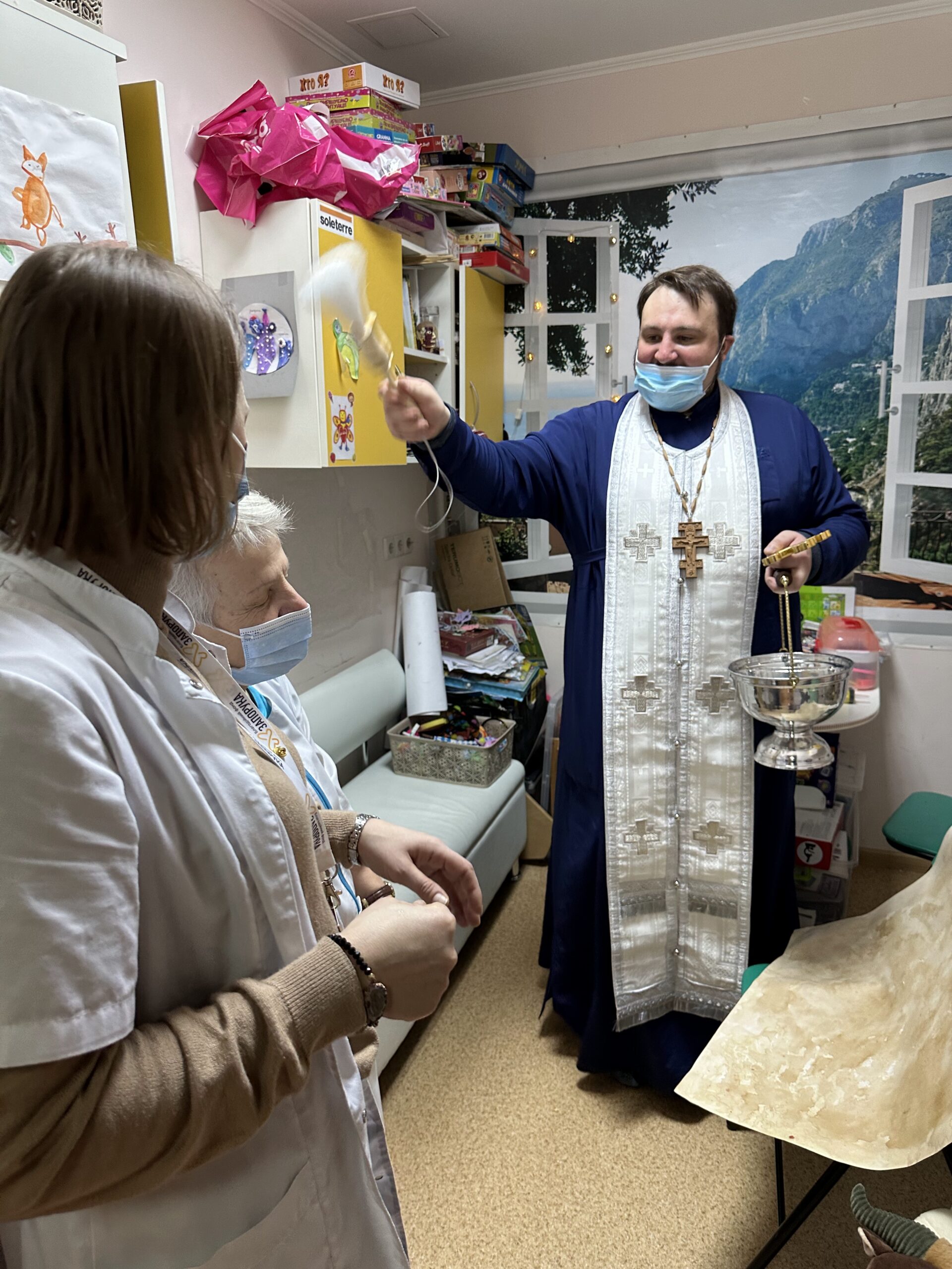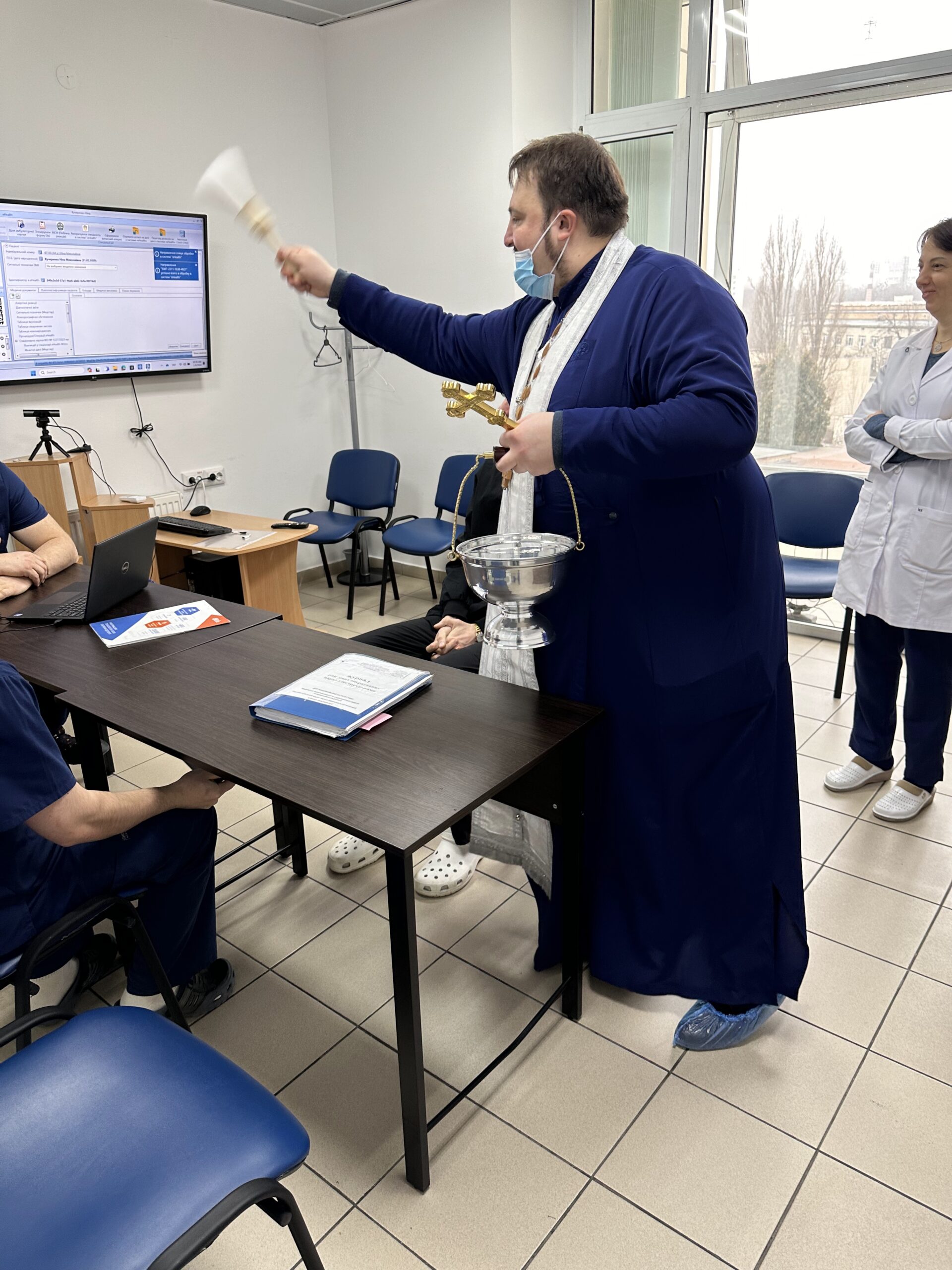 «В нашій країні є християнська традиція, на свято Хрещення Господнього окроплювати наші домівки та робочі кабінети Йорданською водою. Ми в спільній молитві просимо Божого благословення та допомоги на цей рік і віримо, що споживання та окроплення Йорданською водою захистить нас від усякого зла та допоможе у вашій нелегкій праці» , – капелан в охороні здоров’я при ДНП «Національний інститут раку» священик Павло Соколовський