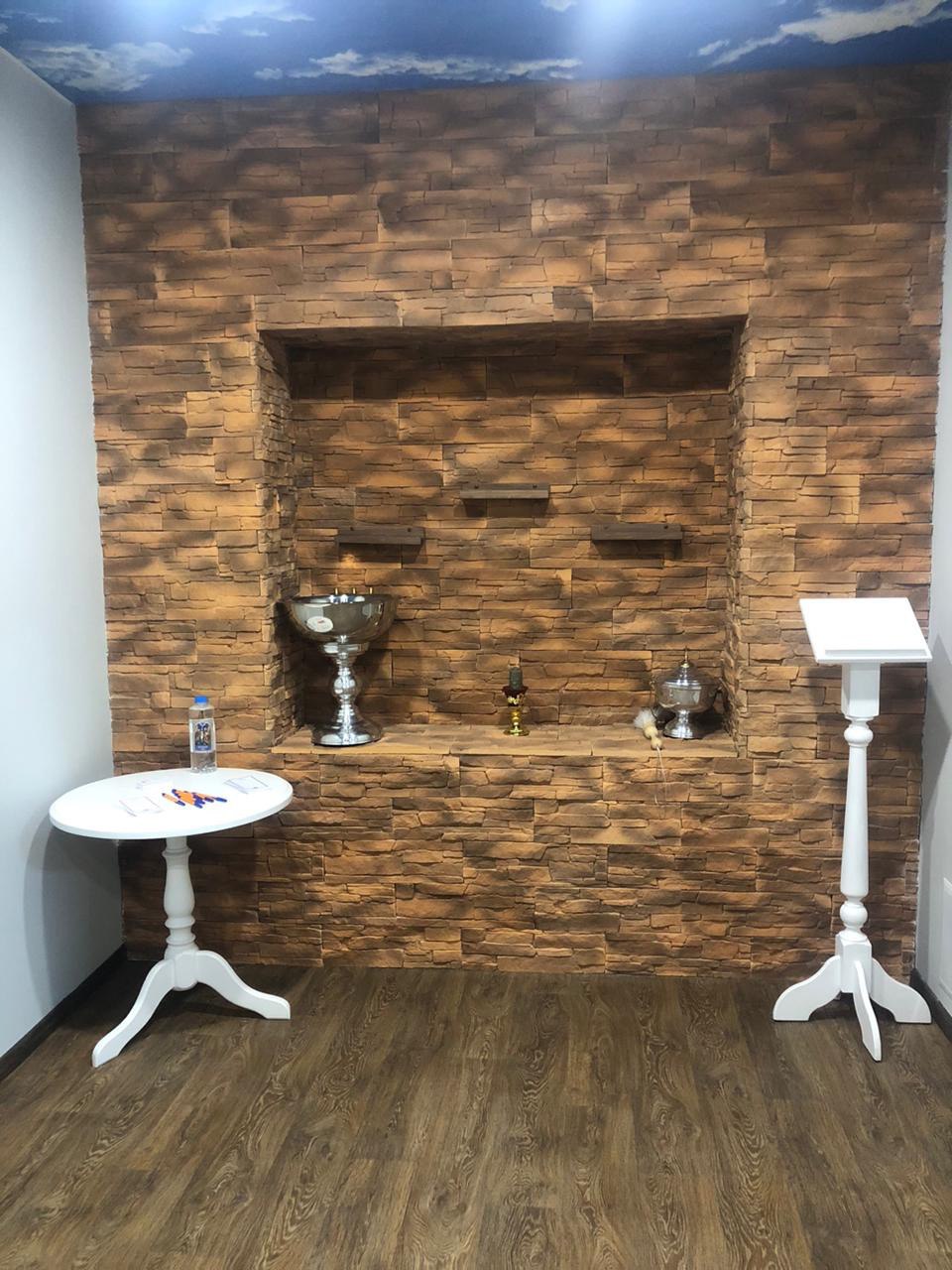 Молитовна кімната облаштована таким чином, щоб не було прив’язаності до певної релігії і людина любої конфесії може звершувати свою молитву.