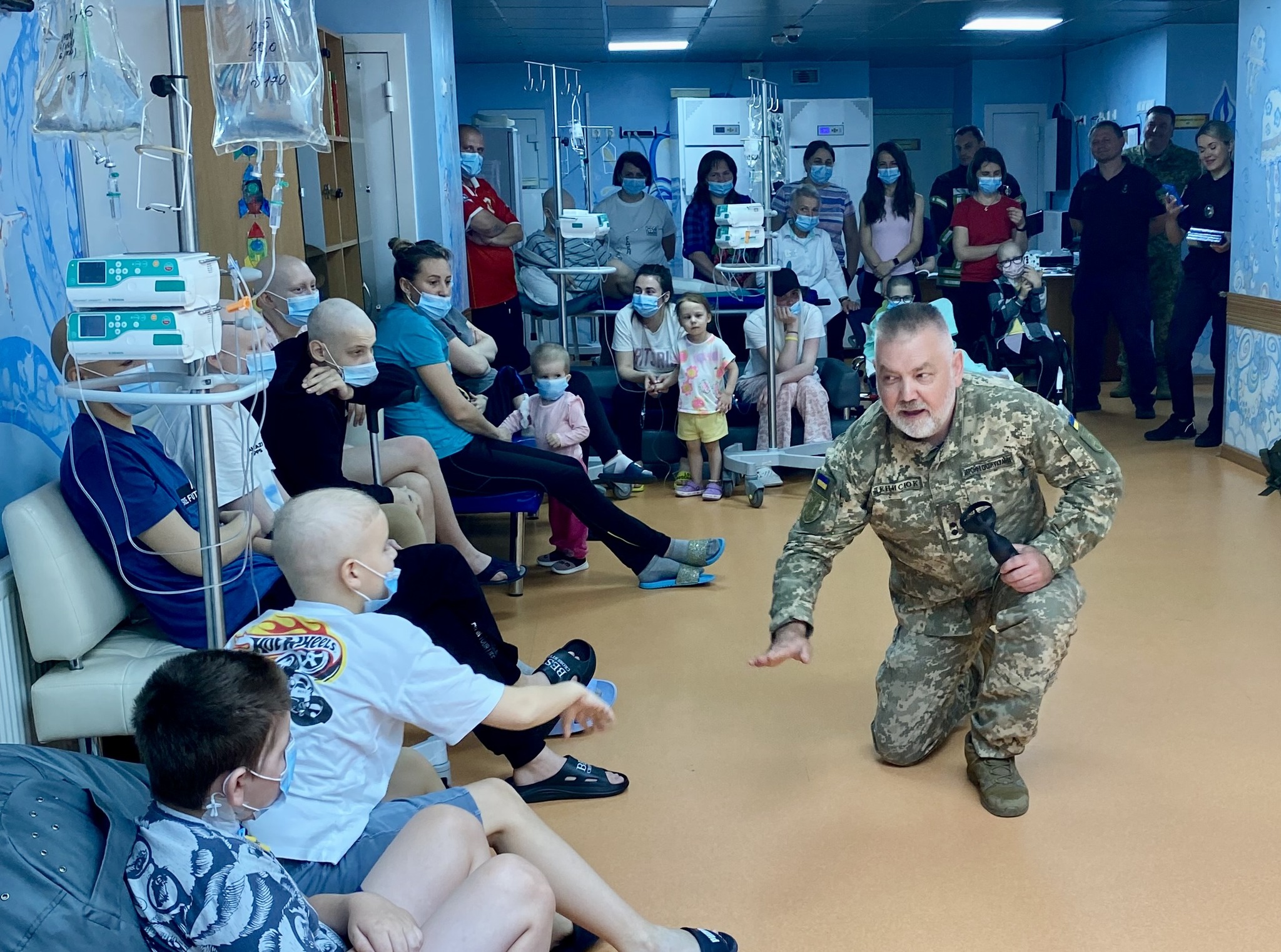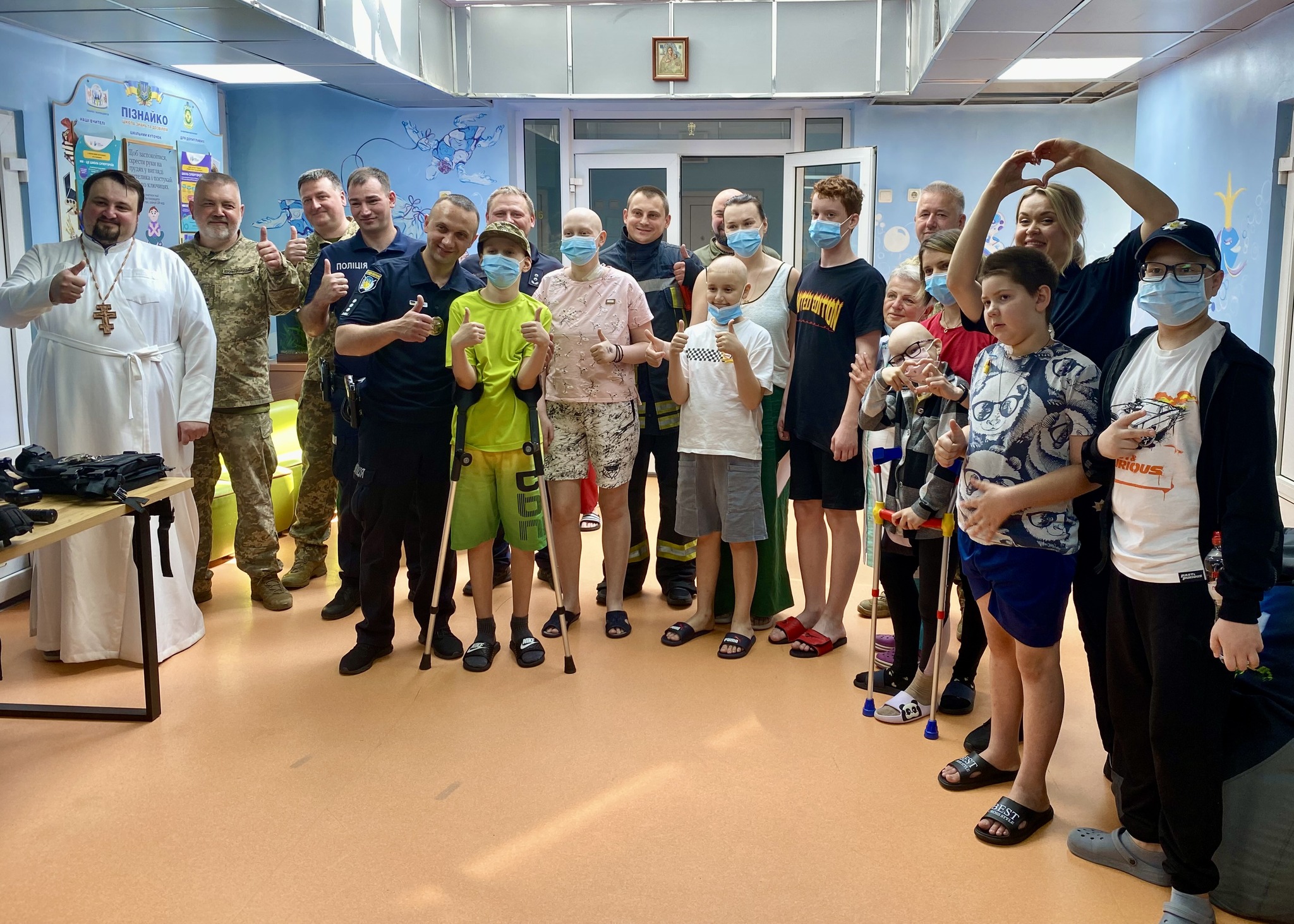 До відділення дитячої онкології ДНП «Національний інститут раку» завітали особливі гості, справжні герої, які щодня стоять на сторожі нашої безпеки та спокою! Це – працівники Державної служби України з надзвичайних ситуацій, Національної поліції України та наші військовослужбовці.