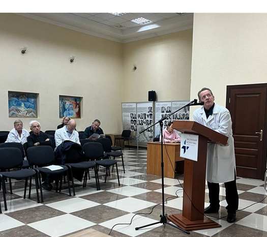 Першим питанням був розгляд проєктів 9 перехідних тем науково-дослідних робіт на 2024 рр. Доповідачами були керівники  науково-клінічних підрозділів, відповідальні виконавці наукових тематик: проф. Болгова Л.С., канд. мед. наук Климнюк Г.І., проф. Коровін С.І., д-р мед. наук Кравець О.В., д-р мед. наук Лялькін С.А., канд. мед. наук Михайлович Ю.Й., проф. Орел В.Е. (відповідальний виконавець Дєдков А. Г.), проф. Солодянникова О.І., д-р біол. наук Храновська Н.М. (доповідала к. мед. наук Скачкова О. В.).